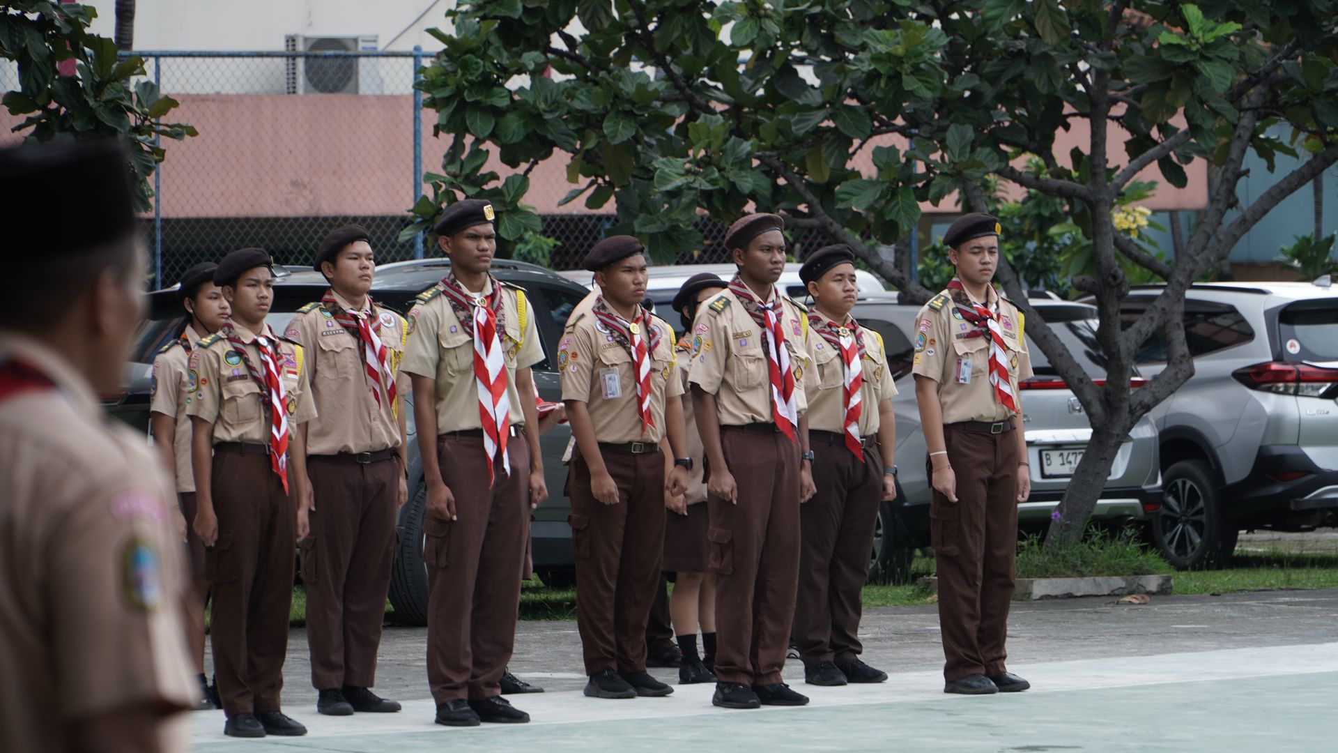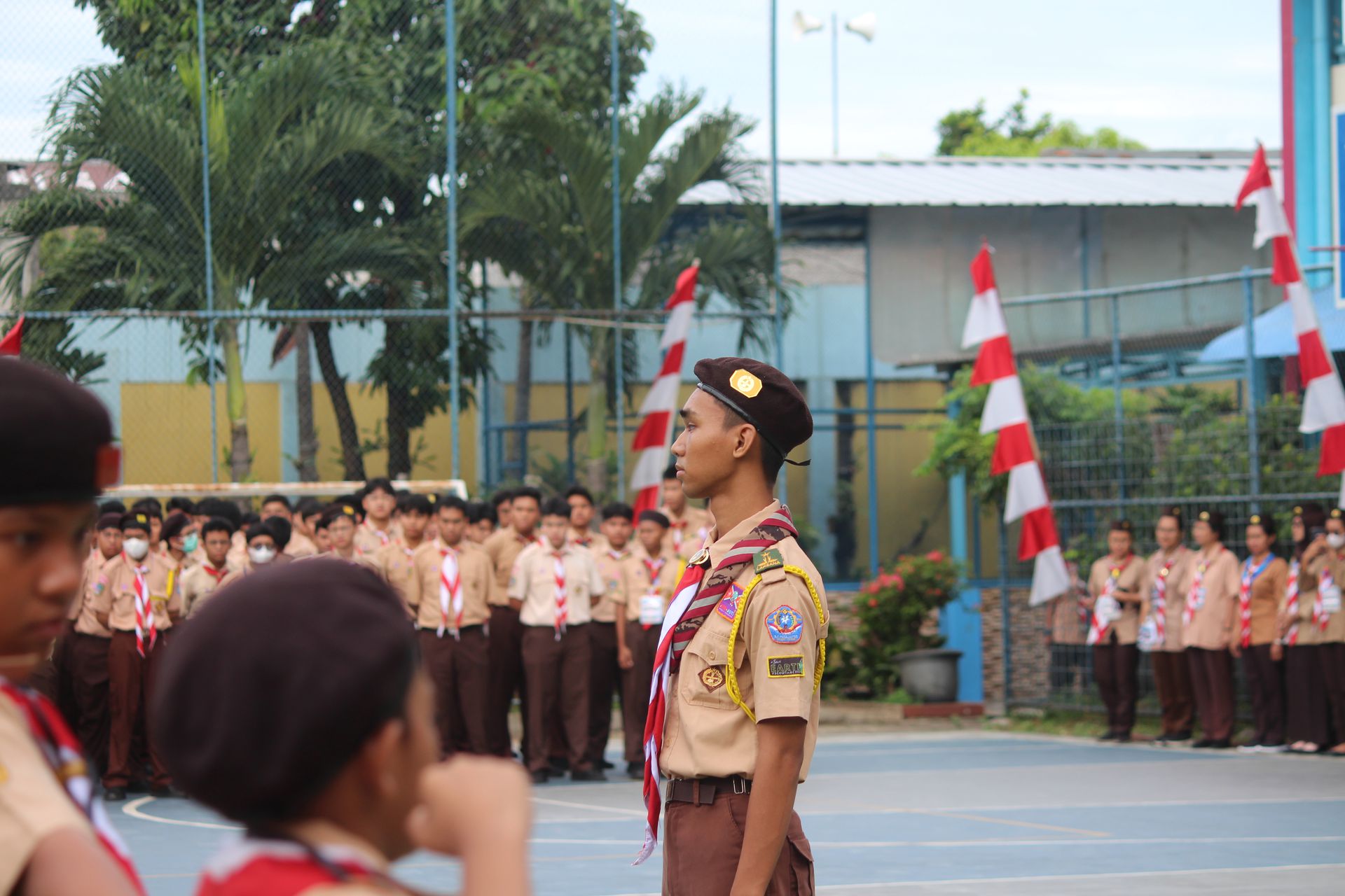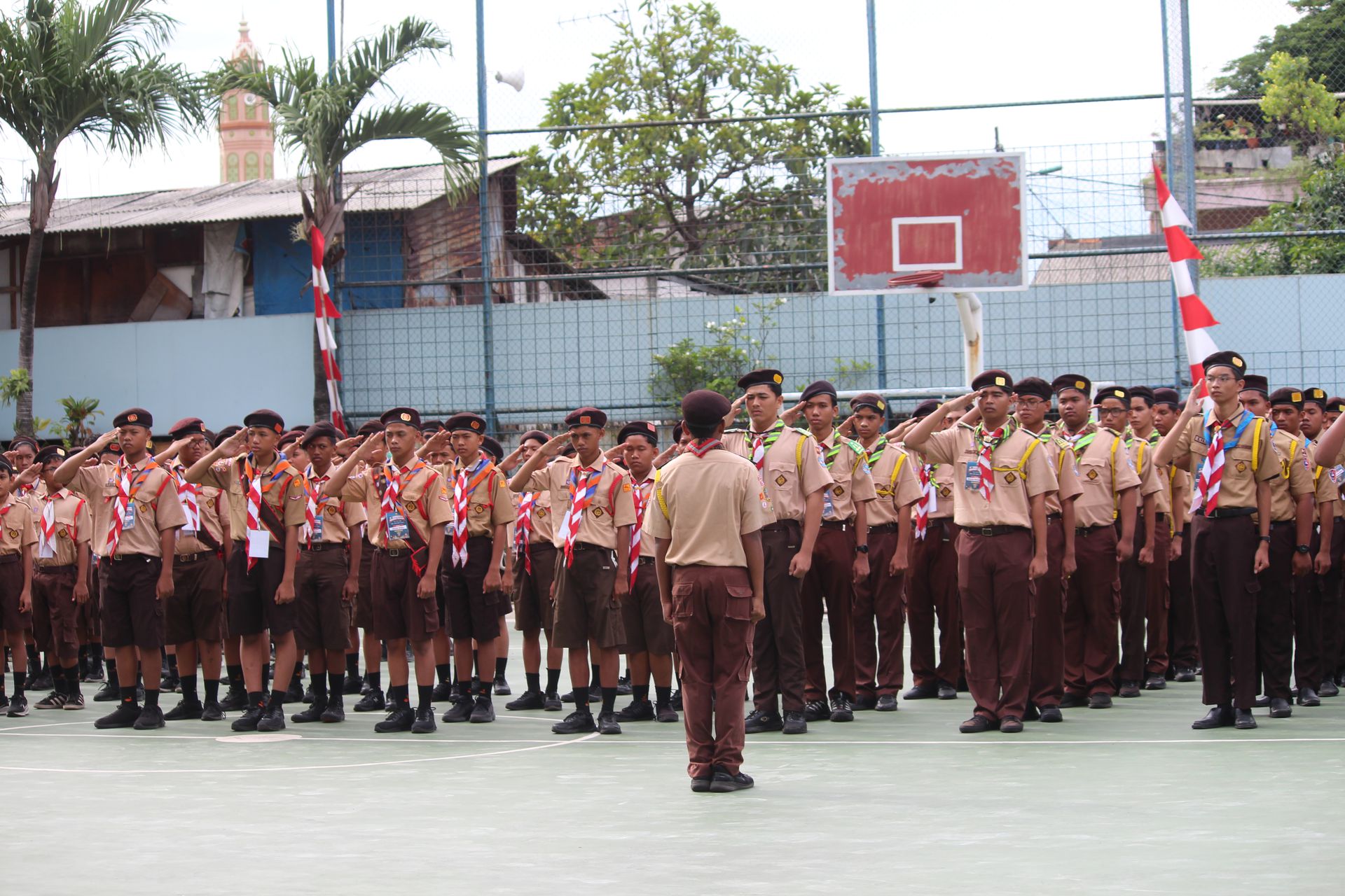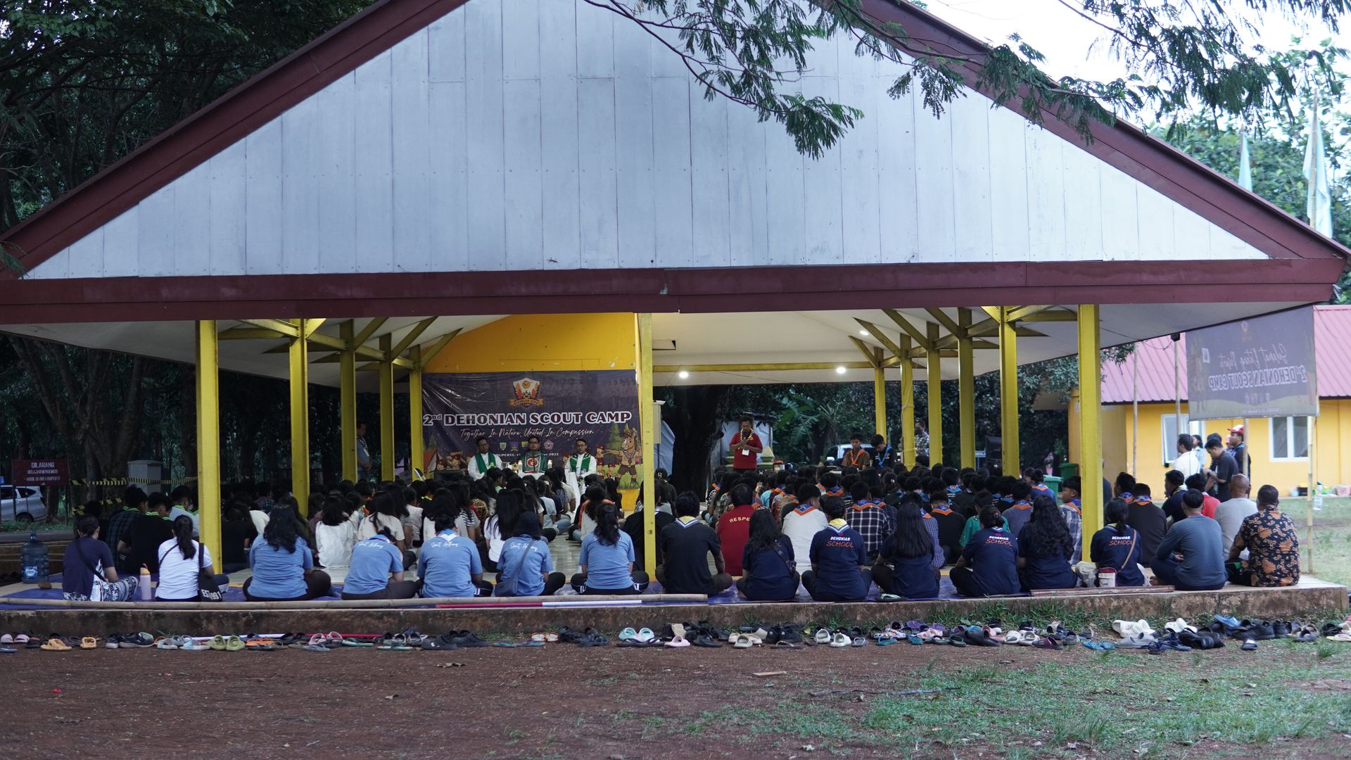 Usai sarapan, peserta dikumpulkan di halaman untuk mengikuti upacara pembukaan di lapangan SMP–SMA Santo Antonius sebelum berangkat menuju Buperta Cibubur. Upacara dipimpin oleh Bruder Tri Antara SCJ selaku ketua pembina, yang menegaskan kembali pentingnya nilai compassion sebagai semangat utama kegiatan hari itu.