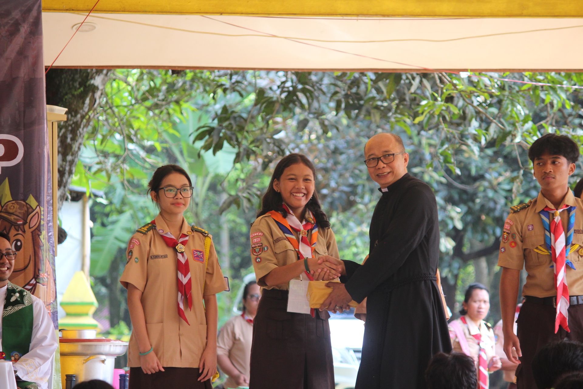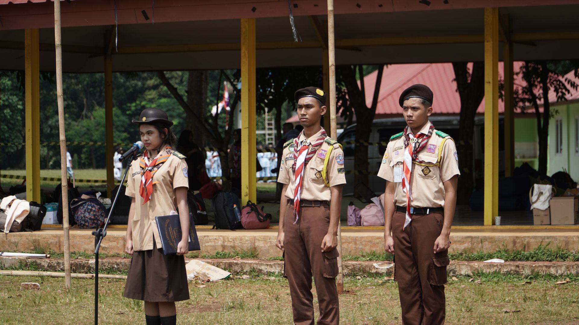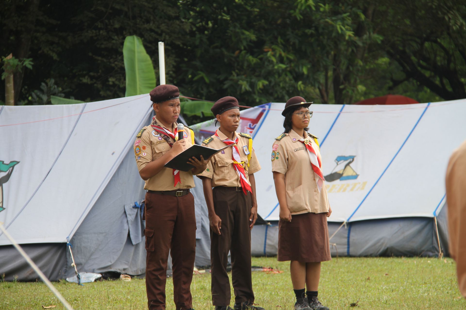 Usai sarapan, peserta dikumpulkan di halaman untuk mengikuti upacara pembukaan di lapangan SMP–SMA Santo Antonius sebelum berangkat menuju Buperta Cibubur. Upacara dipimpin oleh Bruder Tri Antara SCJ selaku ketua pembina, yang menegaskan kembali pentingnya nilai compassion sebagai semangat utama kegiatan hari itu.