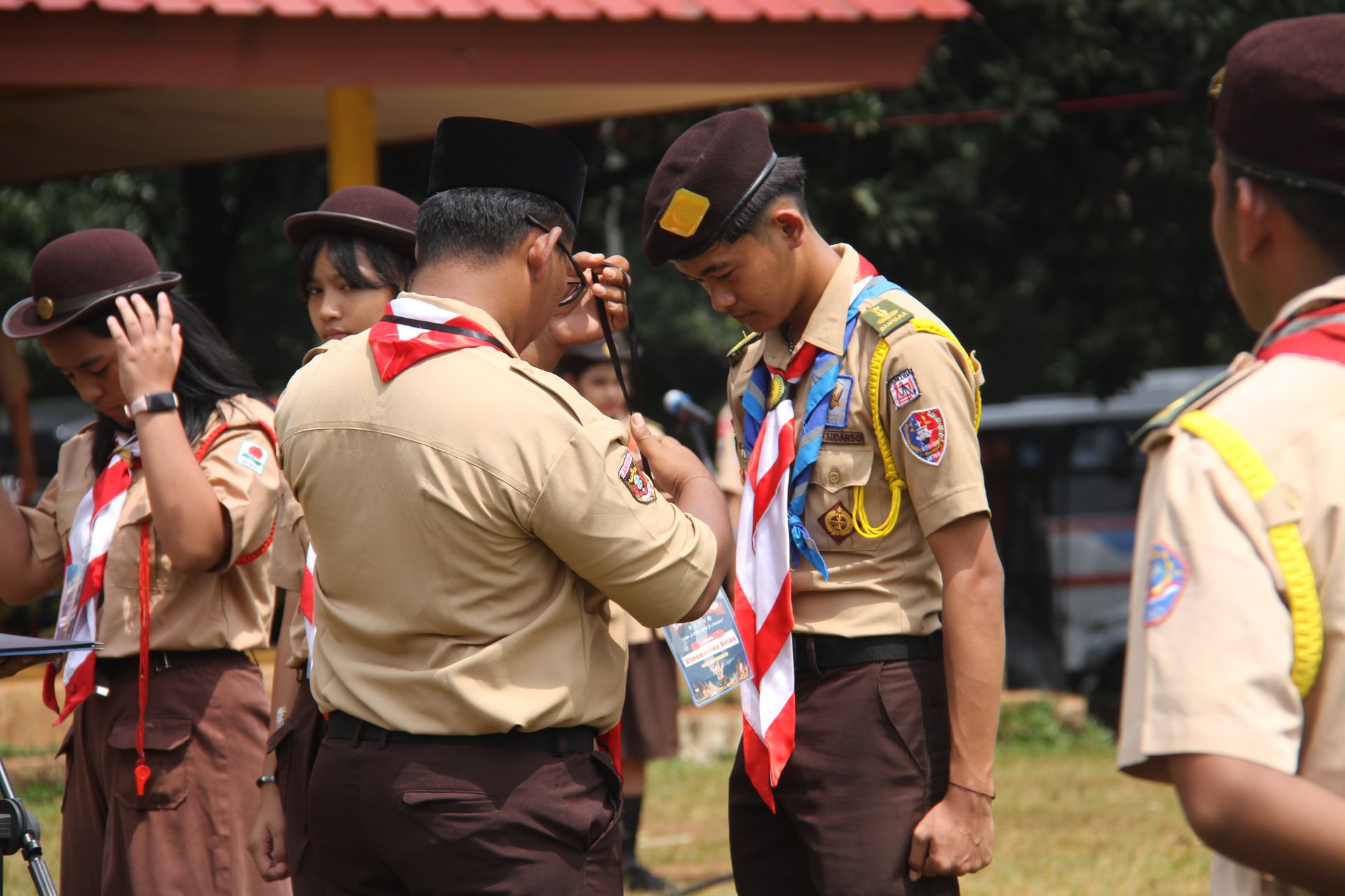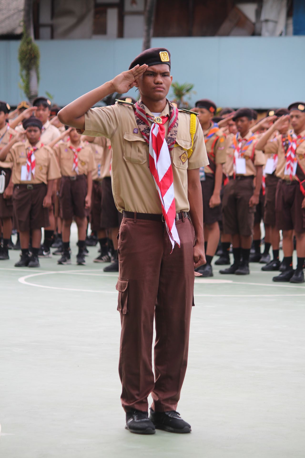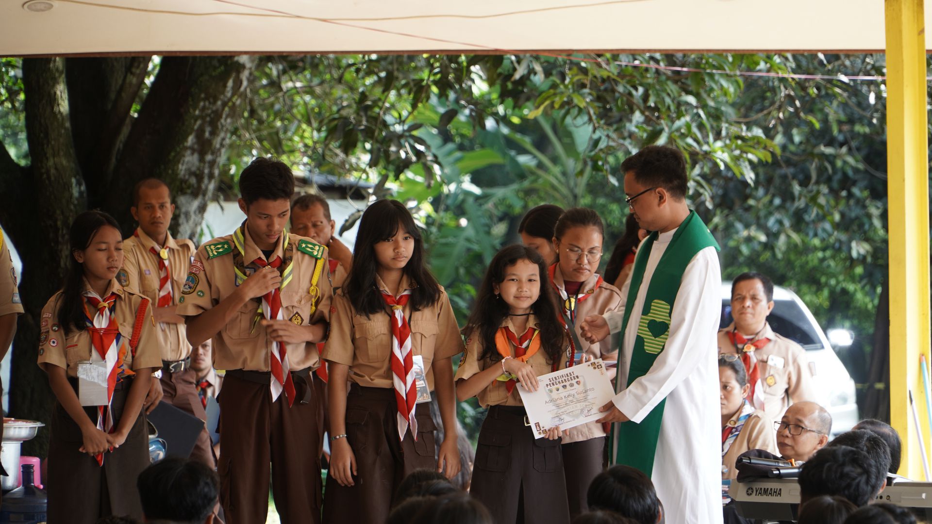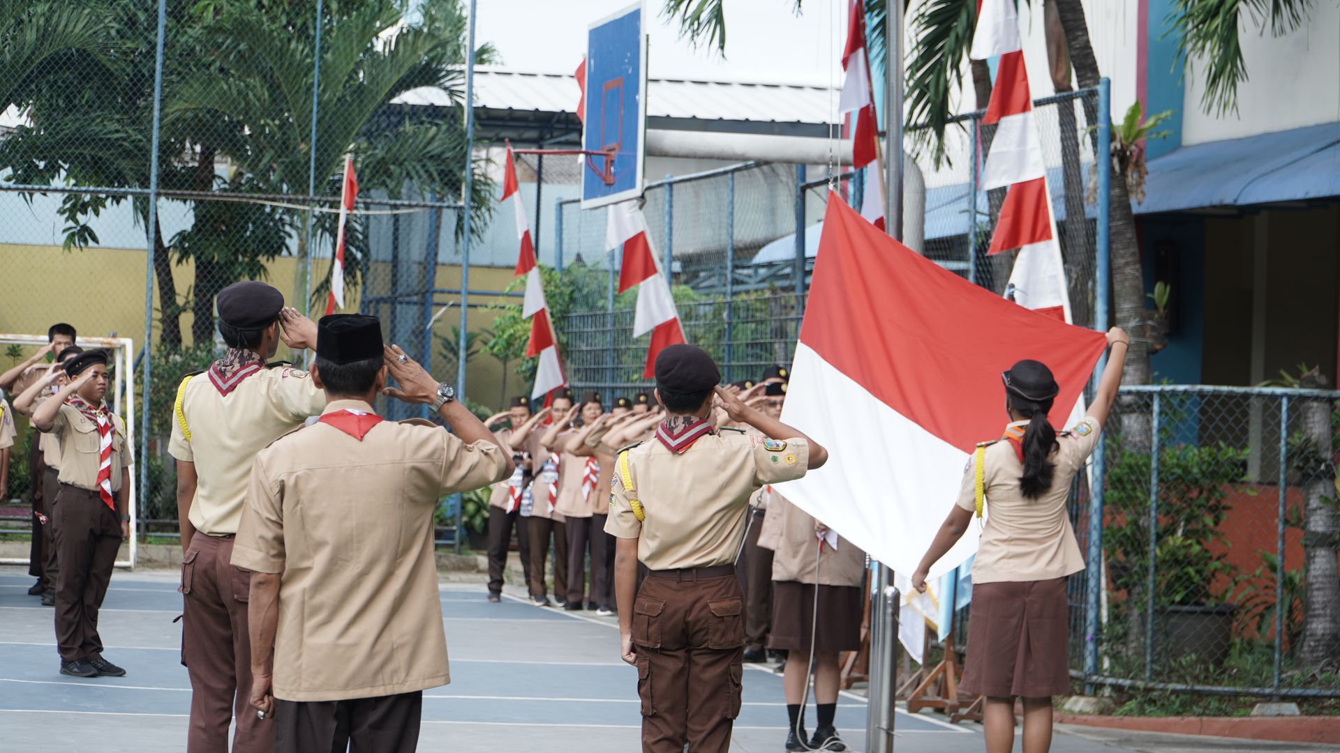 Usai sarapan, peserta dikumpulkan di halaman untuk mengikuti upacara pembukaan di lapangan SMP–SMA Santo Antonius sebelum berangkat menuju Buperta Cibubur. Upacara dipimpin oleh Bruder Tri Antara SCJ selaku ketua pembina, yang menegaskan kembali pentingnya nilai compassion sebagai semangat utama kegiatan hari itu.