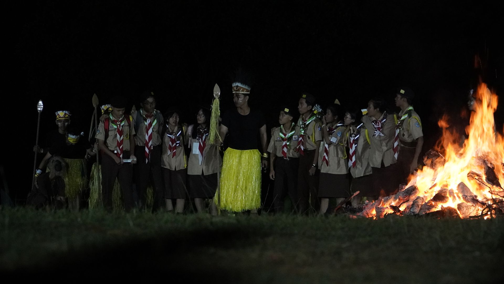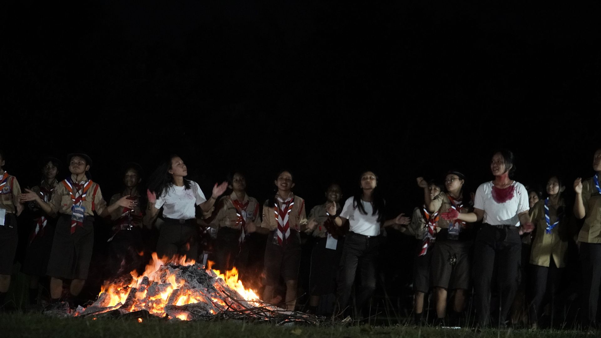 Saat malam tiba, Upacara Api Unggun dilaksanakan dengan meriah. Divisi acara memimpin jalannya acara. Setiap jenjang sekolah tampil membawakan persembahan sesuai kreativitas masing-masing.