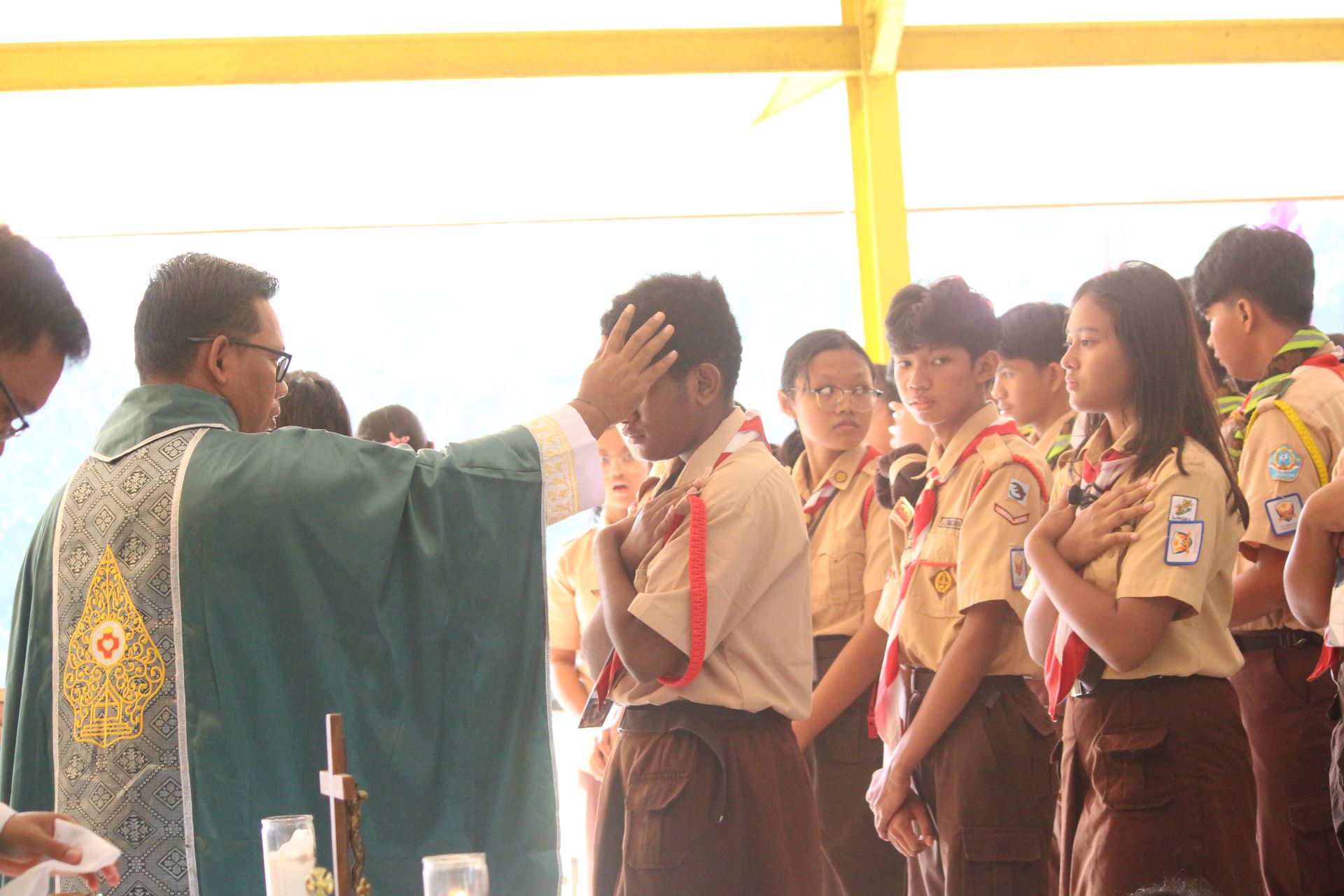 Setelah itu, seluruh peserta mengikuti Perayaan Ekaristi untuk memohon berkat bagi penutupan kegiatan. Suasana berlangsung khidmat dan penuh syukur. Serta memberikan Kesan pesan selama mengikuti Dehonian Scout Camp