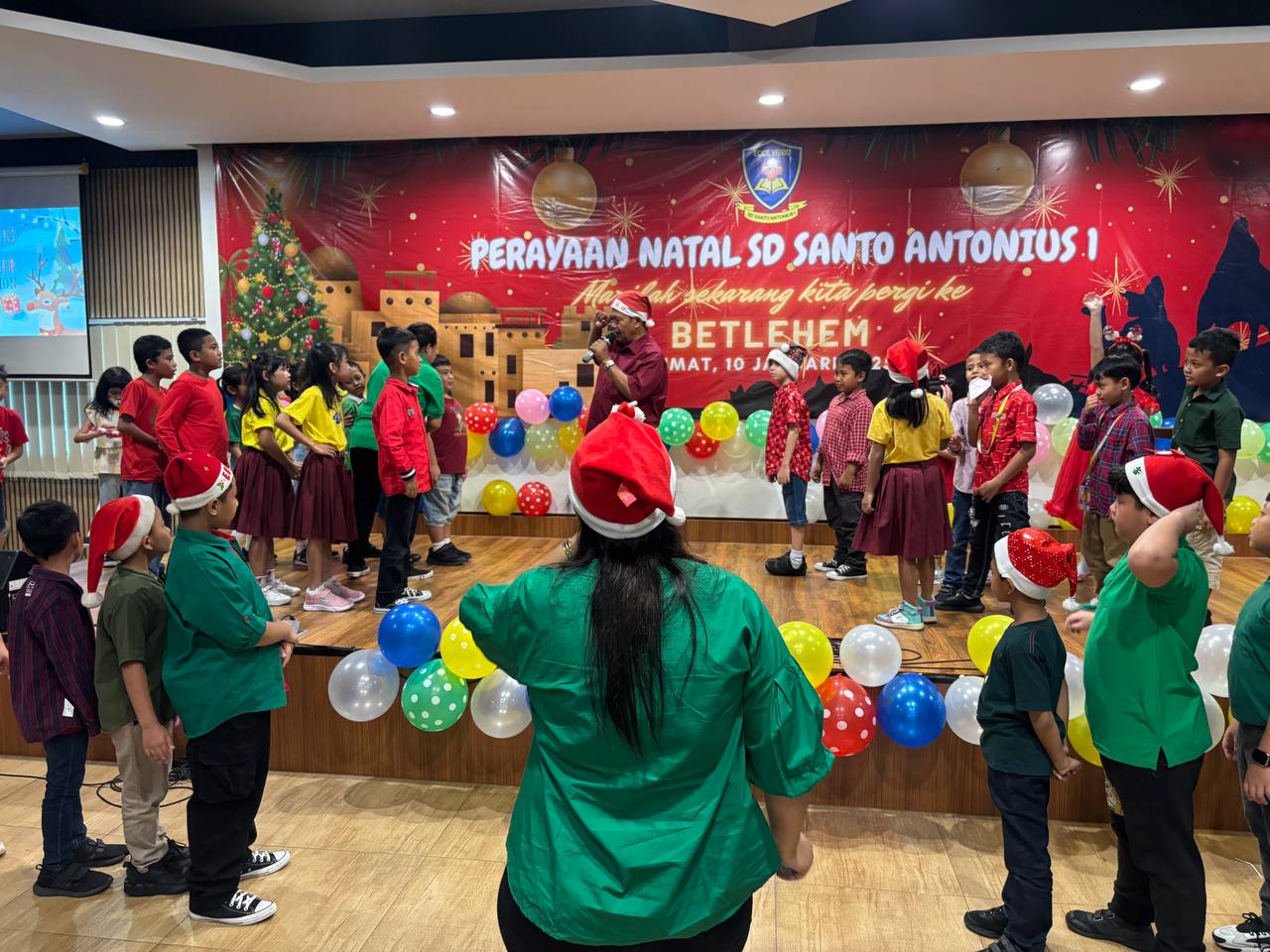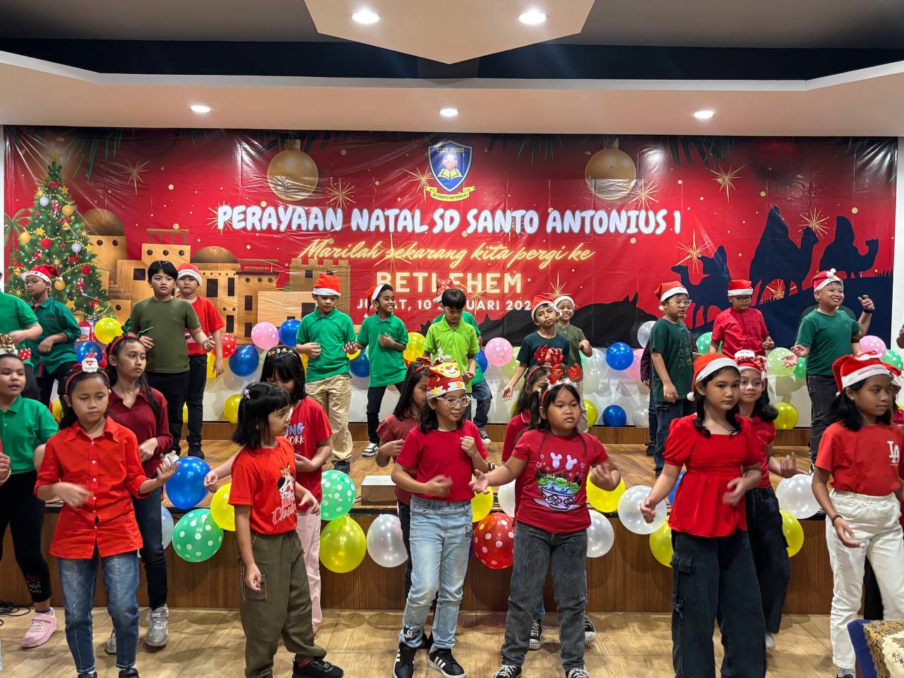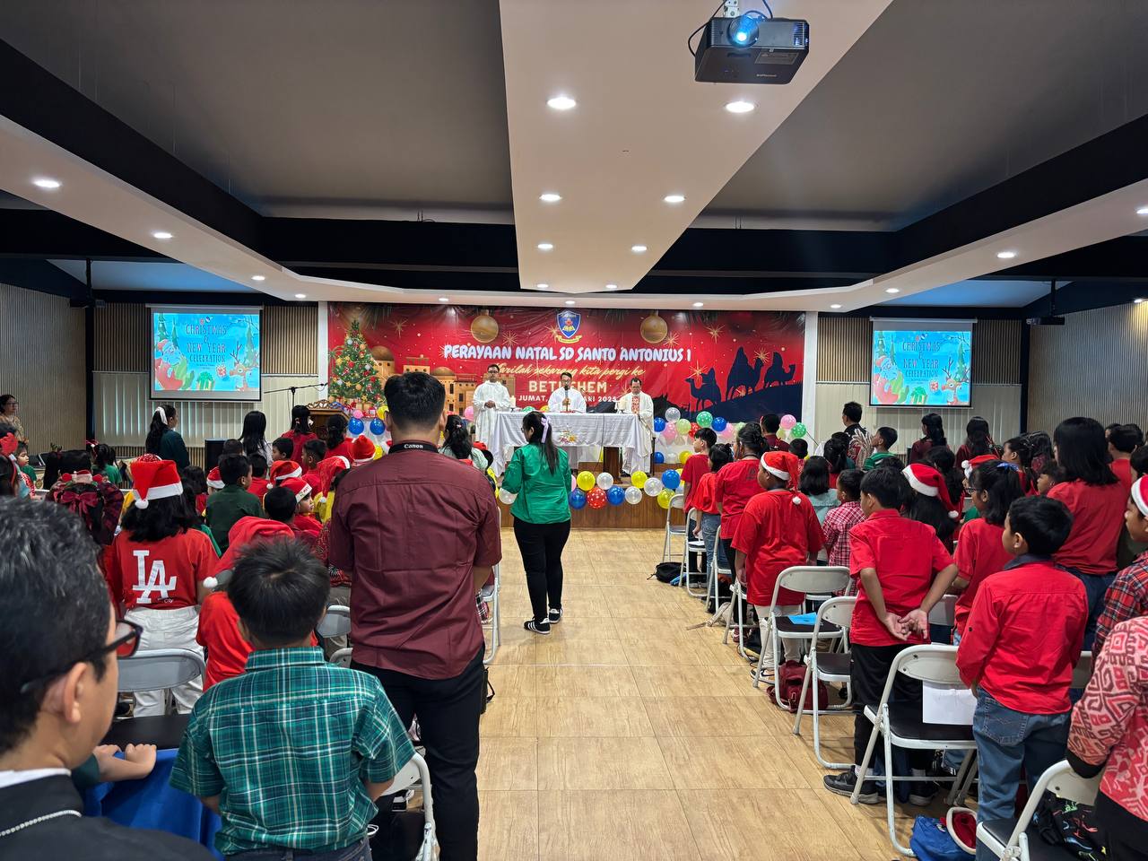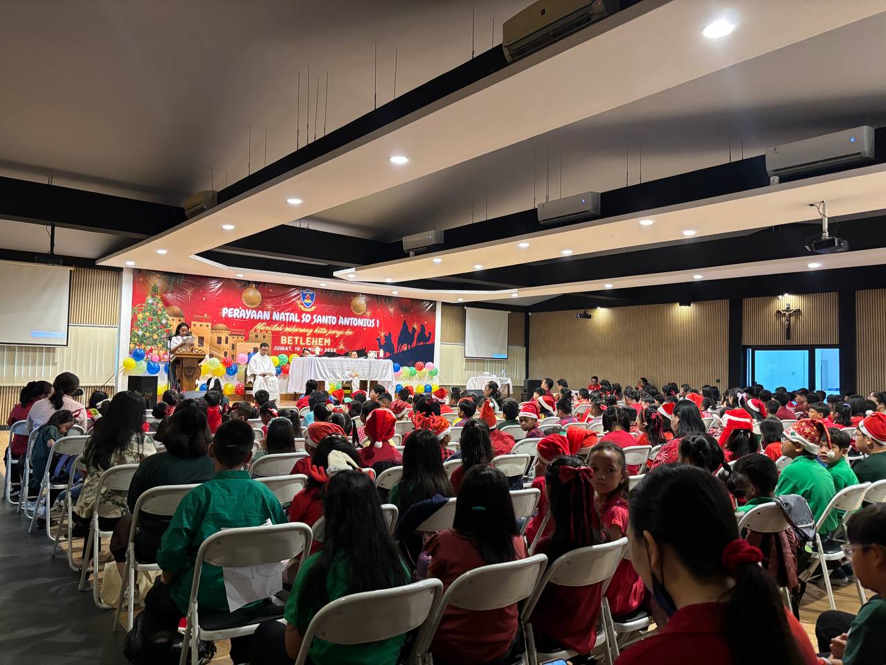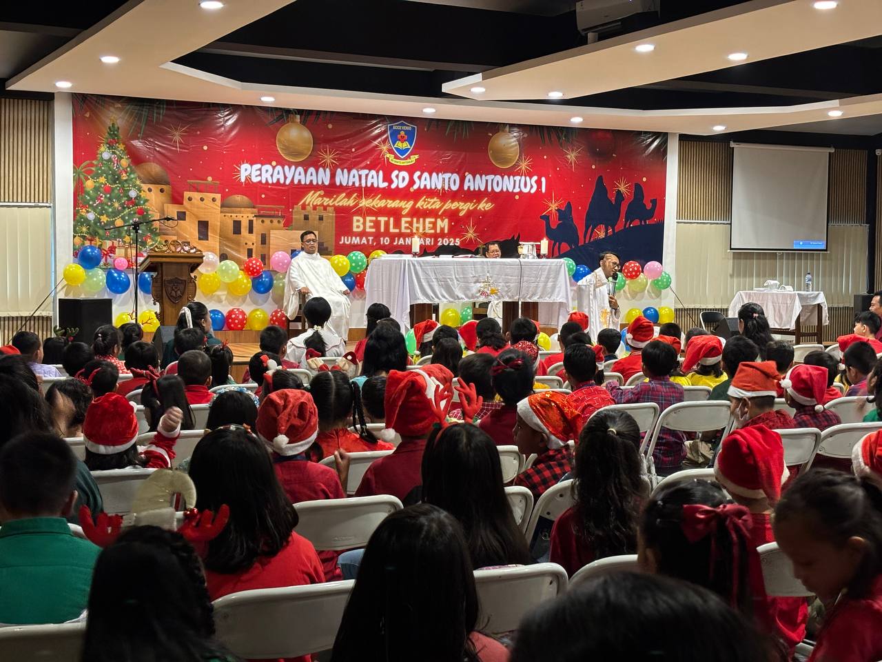 Perayaan Natal di SD Santo Antonius diawali dengan misa yang dipimpin oleh tiga imam, yaitu Rm. Edi Setiawan SCJ, Rm. Ignatius Trisna Setiadi SCJ, dan Rm. Blasius Sumaryo SCJ. Dalam homilinya, Rm. Edi menyampaikan tema perayaan Natal dan Tahun Baru, "Marilah sekarang kita pergi ke Betlehem." Rm. menjelaskan bahwa Santo Antonius adalah Betlehem kita, tempat di mana sukacita dan kedamaian hadir, tempat kita bertumbuh dan berkembang menjadi pribadi yang besar, seperti yang tercermin dalam teladan para bapak dan ibu guru.