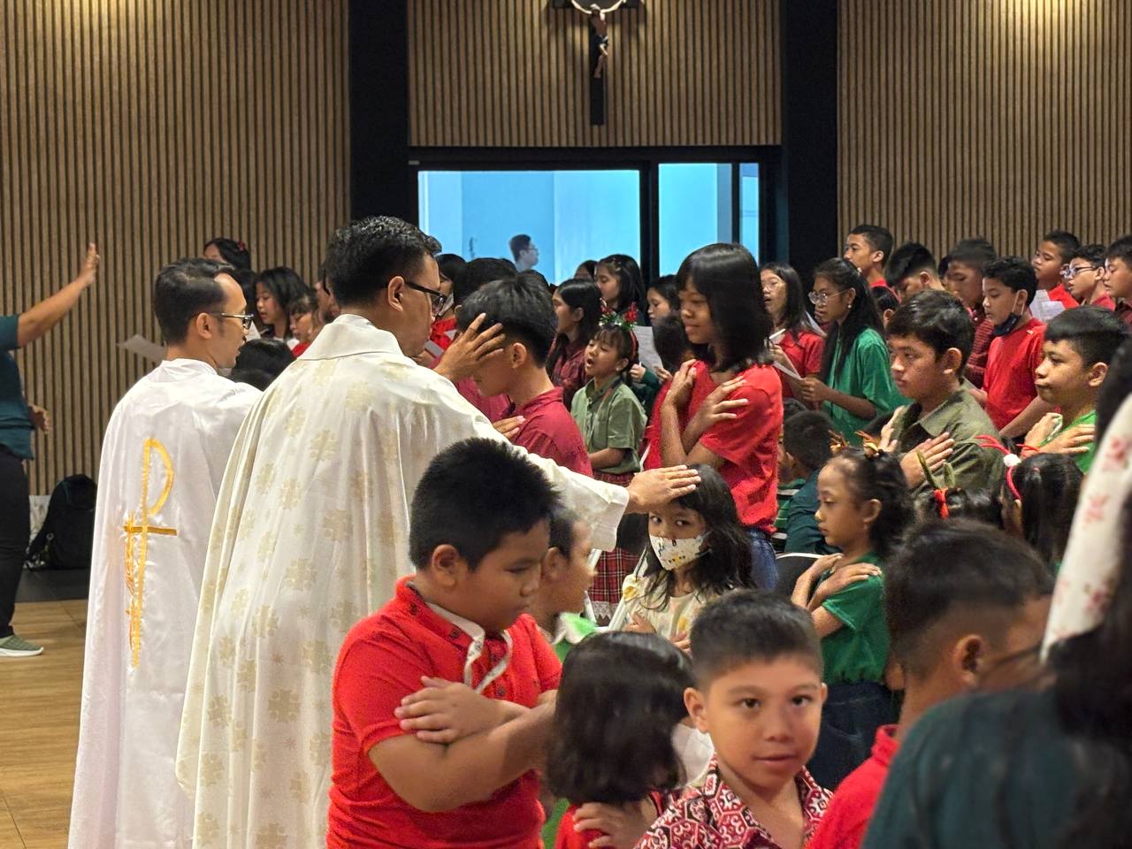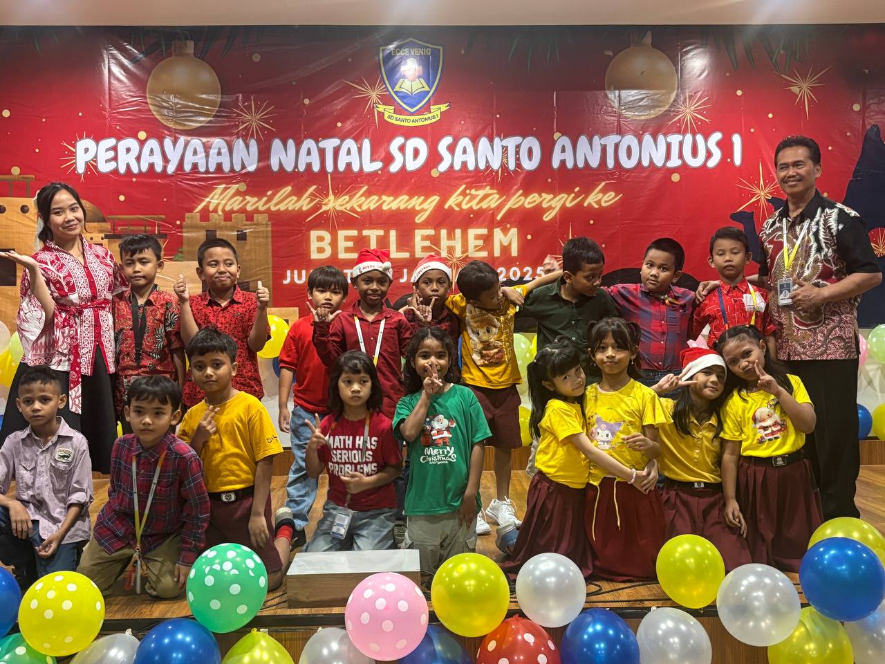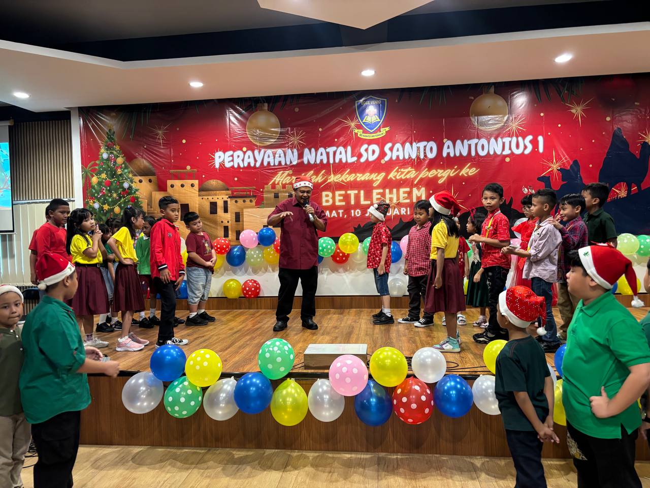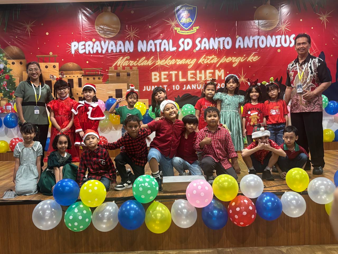 Perayaan Natal di SD Santo Antonius diawali dengan misa yang dipimpin oleh tiga imam, yaitu Rm. Edi Setiawan SCJ, Rm. Ignatius Trisna Setiadi SCJ, dan Rm. Blasius Sumaryo SCJ. Dalam homilinya, Rm. Edi menyampaikan tema perayaan Natal dan Tahun Baru, "Marilah sekarang kita pergi ke Betlehem." Rm. menjelaskan bahwa Santo Antonius adalah Betlehem kita, tempat di mana sukacita dan kedamaian hadir, tempat kita bertumbuh dan berkembang menjadi pribadi yang besar, seperti yang tercermin dalam teladan para bapak dan ibu guru.
