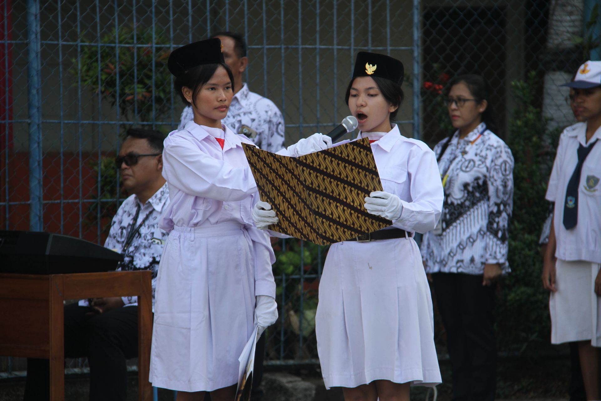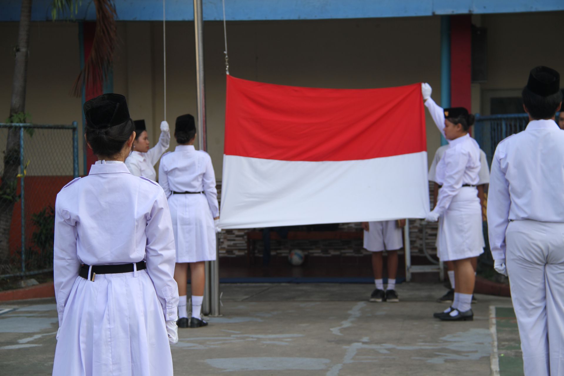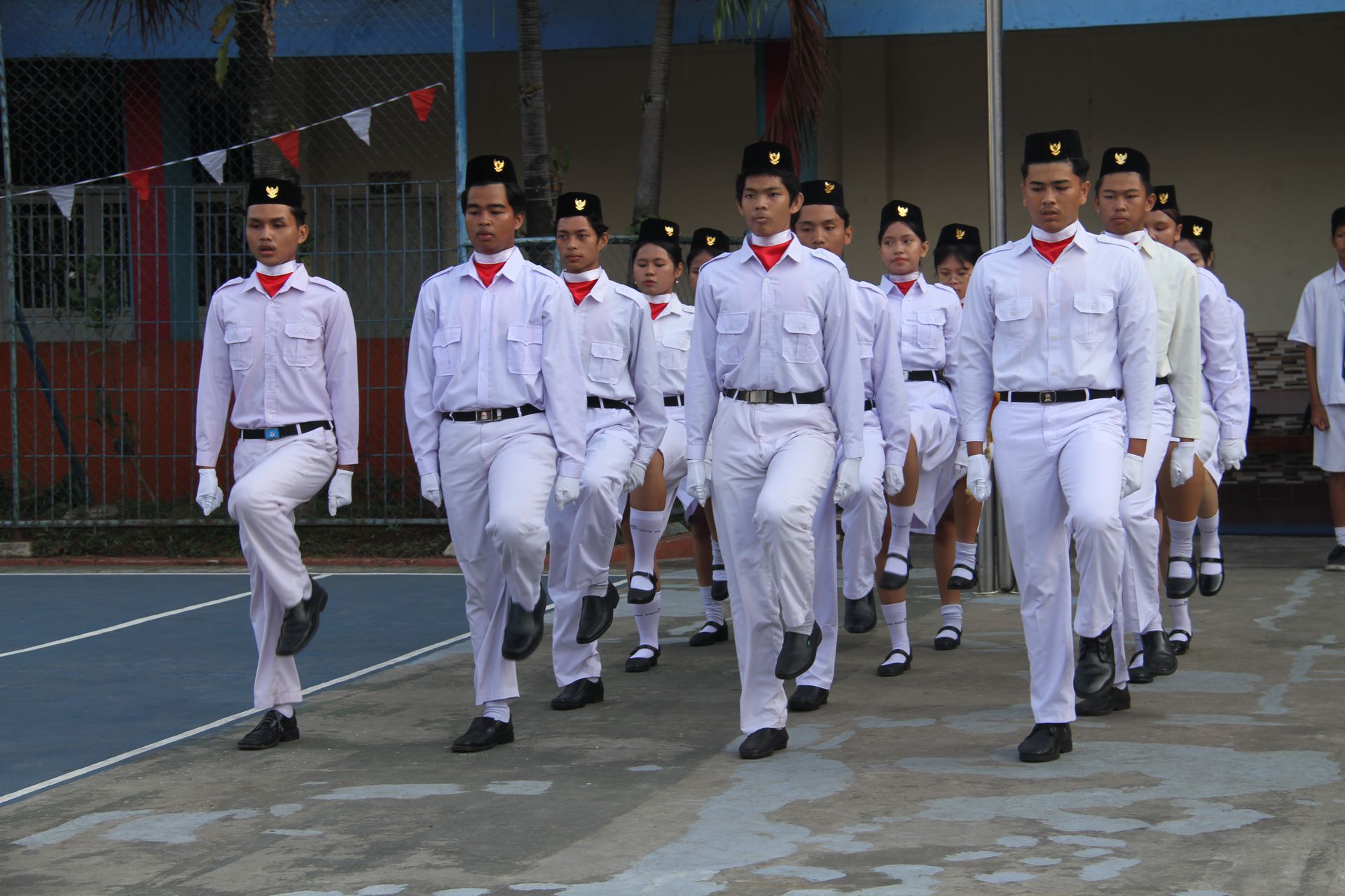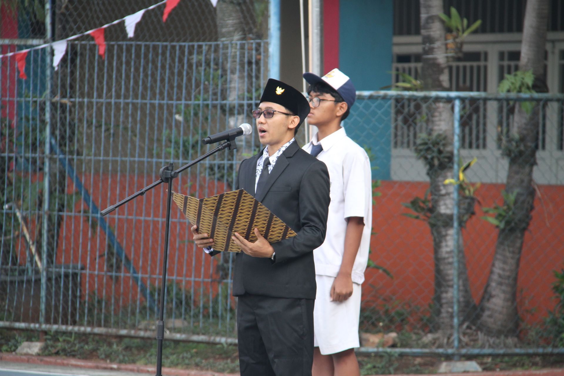 Upacara berlangsung tertib, diawali dengan penghormatan kepada Sang Saka Merah Putih, kemudian diiringi pengibaran bendera dan menyanyikan lagu kebangsaan yang diiringi Paduan suara siswa SMP Santo Antonius, sementara SMA Santo Antonius menampilkan permainan angklung yang dipadukan dengan suara merdu dua siswa. Tidak kalah menarik, siswa SD Santo Antonius I turut berpartisipasi dengan menghadirkan musik kolintang yang mengiringi nyanyian.
